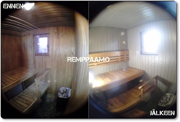 SAUNAREMONTTI -Saunasta purettiin vanhat lauteet ja umpi ovi karmeineen pois. |